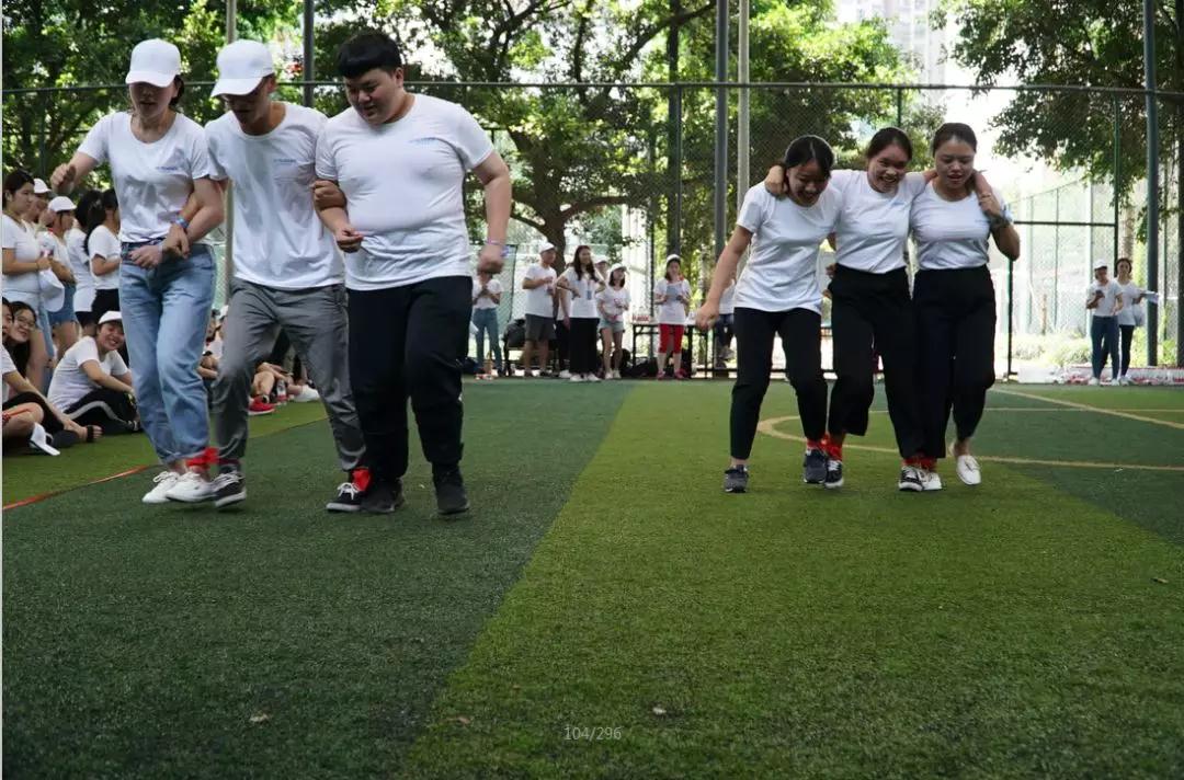 两名队员依次将指压板/脚垫踩在脚下交替向前行进,直到到达终点。下午的江南体育馆骄阳似火,但也抵不过全体参赛队员的激情与活力,接下来就是最考验团结协作和合作意识的团队项目了。
